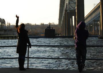 | Keywords: US Navy 120103-N-AW342-034 Family members wave good-bye as the Los Angeles-class attack submarine USS Annapolis (SSN 760) departs from Naval Submar.jpg en GROTON Conn Jan 3 2012 Family members wave good-bye as the Los Angeles-class attack submarine USS Annapolis SSN 760 departs from Naval Submarine Base New London for a scheduled deployment U S Navy photo by Mass Communication Specialist 1st Class Virginia K Schaefer/Released 2012-01-03 120103-N-AW342-034 Navy http //www navy mil/view_image asp id 113026 U S Navy photo by Mass Communication Specialist 1st Class Virginia K Schaefer PD-USGov-Military-Navy USS Annapolis SSN-760 Hand waving Naval Submarine Base New London Gold Star Memorial Bridge |