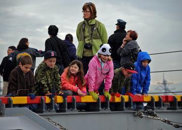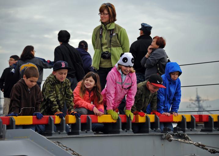 | Keywords: US Navy 120112-N-DP001-019 Children peek over the edge of the amphibious assault ship USS Bonhomme Richard's (LHD 6) flight deck as it gets underwa.jpg en SAN DIEGO Jan 12 2012 Children peek over the edge of the amphibious assault ship USS Bonhomme Richard's LHD 6 flight deck as it gets underway during a family day cruise The ship hosted more than 1 200 guests for a one-day underway to demonstrate the capabilities of the ship U S Navy photo by Mass Communication Specialist 2nd Class Ted Green/ Released 2012-01-12 120112-N-DP001-019 Navy http //www navy mil/view_image asp id 113567 U S Navy photo by Mass Communication Specialist 2nd Class Ted Green PD-USGov-Military-Navy Aboard USS Bonhomme Richard LHD-6 |