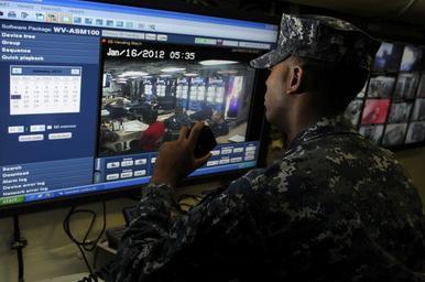 | Keywords: US Navy 120116-N-RG587-009 A Sailor reviews security cameras.jpg en ARABIAN SEA Jan 16 2012 Aviation Ordnanceman 3rd Class Marsades Ceaser reviews security cameras in the security dispatch office aboard th Nimitz-class aircraft carrier USS Carl Vinson CVN 70 Carl Vinson and Carrier Air Wing CVW 17 are deployed to the U S 5th Fleet area of responsibility U S Navy photo by Mass Communication Specialist Seaman Dean M Cates/Released 2012-01-16 120116-N-RG587-009 Navy http //www navy mil/view_image asp id 113536 U S Navy photo by Mass Communication Specialist Seaman Dean M Cates PD-USGov-Military-Navy Aboard USS Carl Vinson CVN-70 |