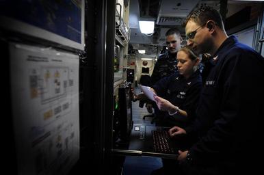 | Keywords: US Navy 120125-N-MD252-497 Sailors configure the global broadcast system in the main communications space.jpg en ARABIAN SEA Jan 26 2011 Information Systems Technician Seaman Patrick McHale left Information Systems Technician 2nd Class Sheri Russell center and Information Systems Technician 3rd Class Chad Martin right all assigned to the combat systems department aboard the Nimitz-class aircraft carrier USS Carl Vinson CVN 70 configure the global broadcast system in the main communications space Carl Vinson and Carrier Air Wing CVW 17 are deployed to the U S 5th Fleet area of responsibility U S Navy photo by Mass Communication Specialist 3rd Class Christopher K Hwang/Released 2011-01-26 120125-N-MD252-497 Navy http //www navy mil/view_image asp id 114144 U S Navy photo by Mass Communication Specialist 3rd Class Christopher K Hwang PD-USGov-Military-Navy Aboard USS Carl Vinson CVN-70 |