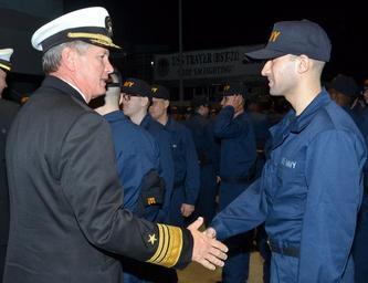 | Keywords: US Navy 120127-N-FO977-812 Vice Adm. Gerald R. Beaman, commander of U. S. 3rd Fleet, congratulates a recruit following a capping ceremony at Recrui.jpg en GREAT LAKES Ill Jan 27 2012 Vice Adm Gerald R Beaman commander of U S 3rd Fleet congratulates a recruit following a capping ceremony at Recruit Training Command RTC Beaman toured the command's training facilities spoke with staff members and recruits and was the reviewing officer at the weekly pass in review graduation More than 525 recruits officially became Sailors at the weekly graduation U S Navy photo by Mike Miller/Released 2012-01-27 120127-N-FO977-812 Navy http //www navy mil/view_image asp id 114683 U S Navy photo by Mike Miller PD-USGov-Military-Navy Naval Station Great Lakes Gerald R Beaman Handshakes involving the military |