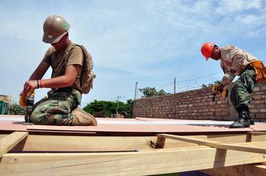 | Keywords: US Navy 120127-A-TF780-230 Heavy Equipment Operator 2nd Class Michael McAfee and Peruvian naval combat engineer Luis Marcos drill holding screws in.jpg en CALLAO Peru Jan 27 2012 Heavy Equipment Operator 2nd Class Michael McAfee assigned to Navy Mobile Construction Battalion NMCB 23 embarked aboard High Speed Vessel HSV 2 Swift and Peruvian naval combat engineer Luis Marcos from the Infanteria De Marina De Callo drill holding screws into corrugated roofing panels at an elementary school in Zona De Acapulco NMCB-23 is working with Navy and Marine combat engineers from Base Naval De Callao and Brigada Infanteria De Marina De Ancon as part of Southern Partnership Station 2012 The Seabees and engineers will spend three weeks refurbishing schools in the area Southern Partnership Station is an annual deployment of U S Navy ships and assets to the U S Southern Command area of responsibility in the Caribbean Central and South America U S Army photo by Sgt 1st Class Alan B Owens/Released 2012-01-27 120127-A-TF780-230 Navy http //www navy mil/view_image asp id 114354 U S Army photo by Sgt 1st Class Alan B Owens PD-USGov-Military-Navy United States Navy in Callao Peru |