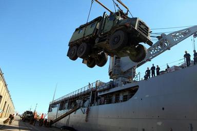 | Keywords: US Navy 120128-M-RU378-009 A crane lifts a Humvee into the air to load it onto the Whidbey Island-class amphibious dock-landing ship USS Gunston Ha.jpg en MOREHEAD CITY N C Jan 28 2012 A crane lifts a Humvee into the air to load it onto the Whidbey Island-class amphibious dock-landing ship USS Gunston Hall LSD 44 as the 24th Marine Expeditionary Unit 24th MEU prepares for their final at-sea training exercise U S Marine Corps photo by Sgt Richard Blumenstein/Released 2012-01-28 120128-M-RU378-009 Navy http //www navy mil/view_image asp id 114363 U S Marine Corps photo by Sgt Richard Blumenstein PD-USGov-Military-Navy Aboard USS Gunston Hall LSD-44 Oshkosh MTVR |