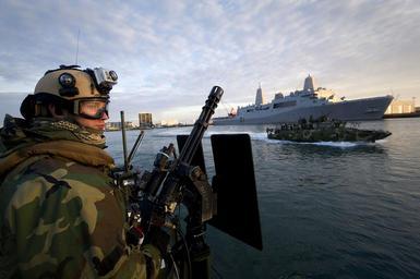 | Keywords: US Navy 120201-N-PC102-115 Boatswain's Mate 3rd Class Jobey French assigned to Riverine Command Boat 803 from Riverine Squadron (RIVRON) 2 mans a M.jpg en CAMP LEJEUNE N C Feb 1 2012 Boatswain's Mate 3rd Class Jobey French assigned to Riverine Command Boat 803 from Riverine Squadron RIVRON 2 mans a MK 44 mini machine gun while conducting security escort operations for ships transiting out to sea through the Intracoastal Waterway in North Carolina during Exercise Bold Alligator 2012 Bold Alligator is the largest naval amphibious exercise in the past 10 years and represents the Navy and Marine Corps' revitalization of the full range of amphibious operations The exercise focuses on today's fight with today's forces while showcasing the advantages of seabasing The exercise will take place Jan 30 through Feb 12 2012 afloat and ashore in and around Virginia and North Carolina U S Navy photo by Mass Communication Specialist 1st Class Richard Brunson/Released 2012-02-01 120201-N-PC102-115 Navy http //www navy mil/view_image asp id 114750 U S Navy photo by Mass Communication Specialist 1st Class Richard Brunson PD-USGov-Military-Navy Marine Corps Base Camp Lejeune Riverine command boat |