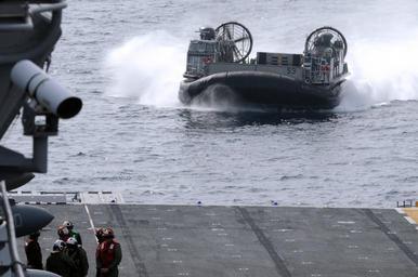 | Keywords: US Navy 120207-N-VG904-220 A landing craft air cushion prepares to enter the welldeck of the amphibious assault craft USS Kearsarge (LHD 3) during.jpg en ATLANTIC OCEAN Feb 7 2012 A landing craft air cushion prepares to enter the welldeck of the amphibious assault craft USS Kearsarge LHD 3 during Bold Alligator 2012 Bold Alligator is the largest amphibious exercise in the past 10 years and represents the Navy and Marine Corps' revitalization of the full range of amphibious operations The exercise focuses on today's fight with today's forces while showcasing the advantages of seabasing The exercise will take place Jan 30 through Feb 12 2012 afloat and ashore in and around Virginia and North Carolina BA12 U S Navy photo by Mass Communication Specialist 2nd Class Tom Gagnier/Released 2012-02-07 120207-N-VG904-220 Navy http //www navy mil/view_image asp id 115192 U S Navy photo by Mass Communication Specialist 2nd Class Tom Gagnier PD-USGov-Military-Navy Aboard USS Kearsarge LHD-3 LCAC-53 ship 1992 Video cameras Bold Alligator 2012 |