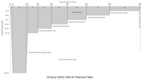 Keywords: US Navy 1943 150ft Air Treatment Table.svg en Graphic representation of US Navy 1943 150ft Air Treatment Table 2015-11-13 own Pbsouthwood other versions cc-zero Decompression tables Uploaded with UploadWizard
