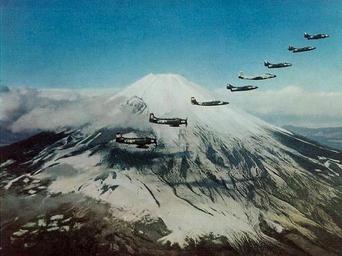 | Keywords: US Navy Air Task Group 1 (ATG-1) aircraft in flight c1955.jpg U S Navy aircraft of Air Task Group 1 ATG-1 flying past Mount Fuji Japan ATG-1 was assigned to the aircraft carrier USS Wasp CVA-18 for a deployment to the Western Pacifc from 1 September 1954 to 11 April 1955 The following aircraft and squadrons are identifiable right to left Grumman F9F-2 Panther from either Fighter Squadron 52 VF-52 Sandlancers or VF-151 Black Knights ; Grumman F9F-6 Cougar from VF-111 Sundowners ; Grumman F9F-2 Panther from either Fighter Squadron 52 VF-52 Sandlancers or VF-151 Black Knights ; McDonnell F2H-3 Banshee from Composite Squadron 3 VC-3 Det H Blue Nemesis ; Grumman F9F-2 Panther from VF-151 Black Knights ; McDonnell F2H-2P Banshee from VC-61 Det H Eyes of the Fleet ; Douglas AD-6 Skyraider from VF-194 Main Battery ; Douglas AD-4N Skyraider from VC-35 Det H Night Hecklers U S Navy photo http //navysite de/cruisebooks/cv18-55/094 htm from the http //navysite de/cruisebooks/cv18-55/index_006 htm USS Wasp CVA-18 1954-1955 cruise book available at http //navysite de/cruisebooks/index html Navysite de ca 1955 USN PD-USGov-Military-Navy United States Navy carrier air wings Aerial photographs of Mount Fuji |
