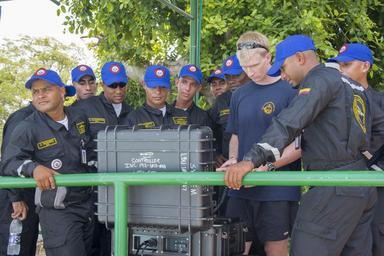 | Keywords: US Navy divers discuss their underwater robot with Colombian divers as part of Southern Partnership Station '14 140820-N-IP743-182.jpg en Navy Diver 3rd Class Zoe Young assigned to Mobile Diving and Salvage Unit Two MDSU 2 Company 2-1 demonstrates the controls of a remote operated underwater vehicle to Colombian dive students from the Departamento de Buceo y Salvamento The MDSU 2 divers are in Colombia working with the Armada de la Republica de Colombia as part of Southern Partnership Station 2014 Southern Partnership Station 2014 is a U S Navy deployment focused on subject matter expert exchanges with partner nation militaries and security forces in Central and South America and the Caribbean U S military teams work with partner nation forces during naval-focused training exercises military-to-military engagements and community relations projects in an effort to enhance partnerships with regional maritime activities and improve the operational readiness of participants U S Navy photo by Mass Communication Specialist 1st Class Brett Cote/Released 2014-08-20 Petty Officer 1st Class Brett Cote https //www dvidshub net/image/1516606 140820-N-IP743-182 2014-08-21 17 45 CARTAGENA CO PD-USGov-Military-Navy United States Navy Mobile Diving and Salvage Unit Two Southern Partnership Station 2014 Images from DoD uploaded by Fæ |