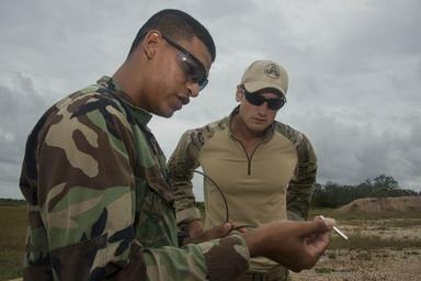 | Keywords: US Navy EOD works with Belizean forces as part of Southern Partnership Station 140714-N-IP743-117.jpg en Lt Mike Slagh of Explosive Ordnance Disposal Mobile Unit EODMU 3 and Petty Officer 3rd Class Karl Borland of the Belize Coast Guard SEALs examine a blasting cap during a joint training evolution EODMU 3 is working with the Belize military as part of Southern Partnership Station 2014 Southern Partnership Station 2014 is a U S Navy deployment focused on subject matter expert exchanges with partner nation militaries and security forces in Central and South America and the Caribbean U S military teams work with partner nation forces during naval-focused training exercises military-to-military engagements and community relations projects in an effort to enhance partnerships with regional maritime activities and improve the operational readiness of participants U S Navy photo by Mass Communication Specialist 1st Class Brett Cote/Released 2014-07-14 Petty Officer 1st Class Brett Cote https //www dvidshub net/image/1448924 140714-N-IP743-117 2014-07-15 17 19 BELIZE CITY BZ PD-USGov-Military-Navy Southern Partnership Station 2014 Images from DoD uploaded by Fæ |