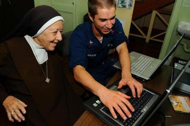 | Keywords: US Navy Information Systems Technician teaches Carmelite Sister to use the Internet.jpg en BELMONT Trinidad and Tobago Nov 3 2008 Information Systems Technician 2nd Class Andrew Bryson assigned to the amphibious assault ship USS Kearsarge LHD 3 teaches Sister Helena of the Carmelite Sister Convent how to use the Internet Kearsarge is the primary platform for the Caribbean phase of the humanitarian assistance mission Continuing Promise 2008 U S Navy photo by Mass Communication Specialist Seaman Apprentice Joshua Adam Nuzzo Released 2008-11-03 081103-N-4515N-016 Navy http //www navy mil/view_image asp id 66099 U S Navy photo by Mass Communication Specialist Seaman Apprentice Joshua Adam Nuzzo PD-USGov-Military-Navy People using computers in the 2000s Images from US Navy location BELMONT Trinidad and Tobago Information Systems Technician United States Navy Roman Catholic Carmelite nuns |