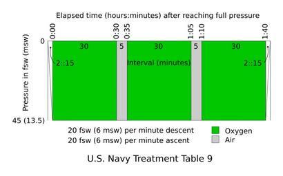 Keywords: US Navy Table 9.svg en Graphic representation of US Navy Treatment Table 9 2015-11-09 own Pbsouthwood other versions cc-zero Decompression tables Uploaded with UploadWizard