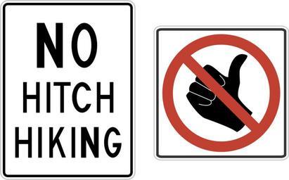 | Keywords: US no hitchhiking signs.svg From the en MUTCD These are the two signs under federal standards that are used to designate an area as no hitchhiking Commonly seen near prisons US_no_hitchhiking_signs png 2010-09-13 09 42 UTC US_no_hitchhiking_signs png Original uploader was Shadowlink1014 at http //en wikipedia org en wikipedia derivative work Arnaud Ramey <small> talk </small> vectorized Arnaud ramey US_no_hitchhiking_signs png PD-USGov Original upload log This image is a derivative work of the following images File US_no_hitchhiking_signs png licensed with PD-USGov 2007-08-28T14 05 56Z Liftarn 347x208 3519 Bytes <nowiki> From the en MUTCD These are the two signs under federal standards that are used to designate an area as no hitchhiking Commonly seen near prisons Originally from http //en wikip</nowiki> Uploaded with derivativeFX Hitchhiking Thumbs up icons Hand symbols Diagrams of U S Regulatory Signs |