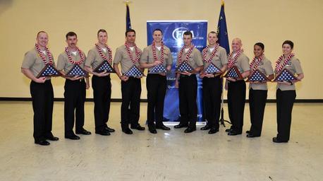 | Keywords: US Pacific Fleet SOY finalist at the FRA breakfast 140324-N-IT566-069.jpg en U S Pacific Fleet Sea and Shore Sailors of the Year SOY nominees display flags they received from the Fleet Reserve Association that were flown over the USS Arizona Memorial The SOY finalists are participating in a variety of personal and professional evaluations as well as leadership naval heritage and team-building events throughout the week around historic Pearl Harbor U S Navy photo by Mass Communication Specialist 1st Class David Kolmel/Released 2014-03-24 Petty Officer 2nd Class David Kolmel https //www dvidshub net/image/1193989 140324-N-IT566-069 2014-03-24 23 22 PEARL HARBOR HI US PD-USGov-Military-Navy 2014 in Pearl Harbor People at Joint Base Pearl Harbor-Hickam Images from DoD uploaded by Fæ |