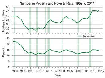 | Keywords: US Poverty.svg en Number in poverty and poverty rate in the United States from 1959 to 2014 Data from https //www census gov/content/dam/Census/library/publications/2015/demo/p60-252 pdf US Census Table B-1 pg 44 own Delphi234 2016-05-14 current annually Generated with Wikimedia SVG Chart SVG Chart/box Cc-zero Poverty in the United States |