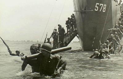 | Keywords: US troops landing into deep water Morotai 017591.jpg AWM image 017591 US Army soldiers disembark into deep water during the landing at Morotai 017591 1944-09-15 Jack Bland The photo has a copyright status of 'Copyright expired - public domain' on the Australian War Memorial collections database PD-Australia Battle of Morotai Black and white photographs |