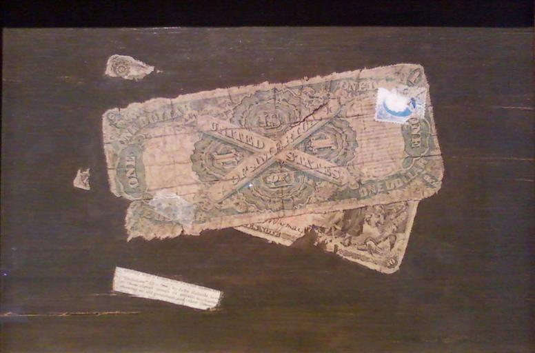 | Keywords: USA by John Haberle.jpg Artwork en Oil on canvas trompe l'oeil image of currency and stamps by John Haberle from 1889 1889 Oil on canvas in 8 5 12 Institution Indianapolis Museum of Art Paine Turn of the Century American Art Gallery object history exhibition history credit line Gift of Paul and Ruth Buchanan accession number 2002 225 photographed by Zambonia 2-28-12 PD-old-auto 1933 Uploaded with UploadWizard American paintings in the Indianapolis Museum of Art Trompe l'oeil in the United States 1880s paintings in the United States John Haberle |