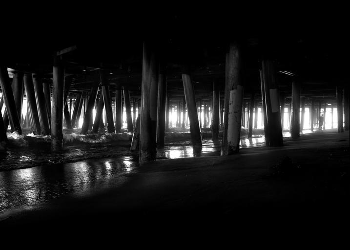 Keywords: usa california bridge santa cruz sea america beach sand water weird black and white lonely