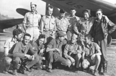 | Keywords: USAAF and RAAF pilots with DC-5 1942.jpg A group of United States Army Air Force pilots and their RAAF co-pilots standing under the wing of a C-110 DC-5 transport aircraft probably at Port Moresby New Guinea 2 September 1942 013168 1942-09-02 Damien Peter Parer Image copyright Copyright expired - public domain frame cropped PD-Australia Douglas DC-5 New Guinea campaign United States Air Force officers World War II people of the Royal Australian Air Force Black and white photographs Damien Parer |