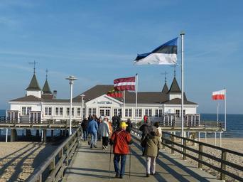 Keywords: usedom island ahlbeck island of usedom germany sea baltic sea beach northern germany sea bridge flag tourism coast