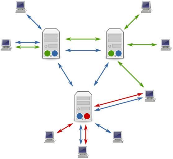 | Keywords: Usenet servers and clients.svg A diagram of some Usenet servers and clients The blue green and red dots on the servers represent which groups they carry Arrows between servers indicate that the servers are sharing the articles from the groups Arrows between computers and servers indicate that the user is subscribed to a certain group and uploads and downloads articles to and from that server Created by bdesham in Inkscape This image includes Computer svg and Network-server svg public-domain icons from the Tango Desktop Project Images incorporating Tango icons Network topology Usenet |