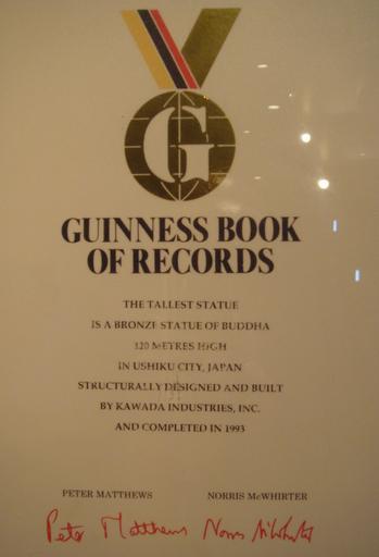 | Keywords: Ushiku Daibutsu Guinness Book Provment.jpg en This is the Guinness Book that proves that Ushiku Daibutsu is the tallest statue in the world de Dies ist die Guinness Buch Bestätigung dass Ushiku Daibutsu die höchste Statue der Welt ist KrasseChecker KrasseChecker 200-05-20 Check categories 2009 June 13 de wikipedia Ushiku_Daibutsu 1 Ushiku Daibutsu |