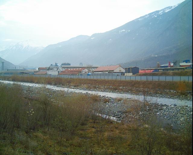 Keywords: Usine Aluminium.JPG fr Vue de l'usine d'aluminium de St Jean de maurienne au bord de la rivière Arc en premier plan own Danny12235 2005-03-17 Saint-Jean-de-Maurienne Arc rivière Factories in Savoie Aluminium industry