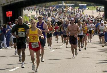 | Keywords: USMC Marathon.jpg Prueba de maratón Caption 041031-N-0502D-398 Washington D C Oct 31 2004 - Hours after starting runners near the end of the 26-mile course at the 29th annual Marine Corps Marathon Nearly 18 000 people ran the marathon that began at Arlington National Cemetery cutting through Georgetown and downtown Washington D C U S Navy photo by Journalist 1st Class Monica Darby RELEASED Marathoners pictured here completed the race in approximately 3 37-3 40 hour time frame e g Felicia Wilkerson bib 85 - 3 39 32; Ricky Miller bib 122 - 3 39 40; Source http //www news navy mil/view_single asp id 18571 navy mil et Pilt Marathon jpg PD-USGov Marathons in the United States 2004 events in the United States 2004 in Washington D C Marine Corps Marathon Women in the United States Marine Corps |
