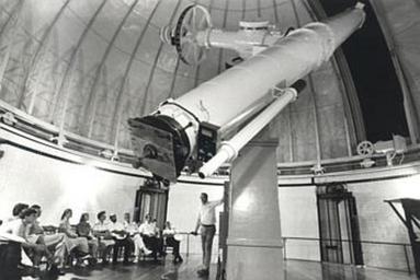 | Keywords: USNO26in-2.jpg en The USNO 26-inch Great Equatorial refracting telescope is located on the grounds of the Observatory at Washington DC and is included as part of the Monday night tour when skies are cloudy This telescope has a rich history Completed in 1873 at a cost of 50 000 it was the largest refracting telescope in the world for a decade The lens and mounting were made by the renowned firm of Alvan Clark Sons of Cambridgeport MA and the great telescope was duly erected on the grounds of the old Naval Observatory site in the Foggy Bottom section of Washington It was from this site in August of 1877 that astronomer Asaph Hall discovered the two moons of Mars Phobos and Deimos with the Great Equatorial Telescope bringing the attention of the world to the USNO The move to the Observatory's present site in 1893 allowed the 26-inch lens to be re-mounted in a new dome with a new mounting designed by the Warner Swasey Company of Cleveland OH This design incorporated a rising floor to facilitate access to the eyepiece This floor is still the largest elevator in the city Today the telescope is used on every clear night to measure the parameters of double stars Over the years visual observations by astronomers using micrometers have been replaced by electronic imaging techniques By taking very short exposures with a Charge-Coupled Device CCD camera astronomers can actually use the blurring effect of Earth's atmosphere to their advantage to measure the separations and position angles of double star components The technique known as speckle interferometry is ideally suited to the nearly 135 year-old optics of the great telescope and relatively unaffected by the urban location of the Observatory Several thousand stars are measured annually and the database of such observations added to the visual observations dating back over a century provide for one of the most concise double star catalogs in the world The telescope is also used to measure the positions of the moons of the outer planets to help refine their orbital parameters These data are vital in planning missions to such distant worlds http //www usno navy mil/USNO/about-us/the-26-inch-refractor http //www usno navy mil/USNO/about-us/images-aboutus/USNO26in-2 jpg image link United States Naval Observatory File Usno-telescope-equalized-1 png higher resolution scan PD-USGov-Military-Navy United States Naval Observatory Refracting telescopes Telescopes containing lenses ground by Alvan Clark Sons |
