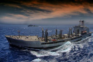 Keywords: usns laramie supply supplies ship sea ocean water sky clouds nature outside waves replenishment