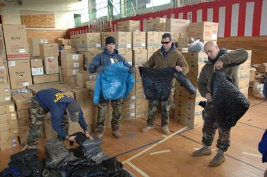 | Keywords: USNS Safeguard visits Onagawa, Japan 111122-N-ZI955-286.jpg en Sailors from Mobile Diving and Salvage Unit 1 assist with folding and storing winter jackets they transported to a local school for donation The sailors currently deployed aboard USNS Safeguard T-ARS 50 are taking part in a port visit to Onagawa While here shipboard personnel are assisting in community service projects and conducting shipboard tours for local school children Onagawa was devastated by the Great East Japan Earthquake March 11 which triggered a massive tsunami that swept through the area Safeguard is the first U S Navy ship to visit the area since Operation Tomodachi concluded 2011-11-22 Senior Chief Petty Officer Daniel Sanford https //www dvidshub net/image/490272 111122-N-ZI955-286 2011-11-22 08 45 ONAGAWA AICHI JP PD-USGov-Military-Navy Mobile Diving and Salvage Unit 1 USNS Safeguard T-ARS-50 Images from DoD uploaded by Fæ |