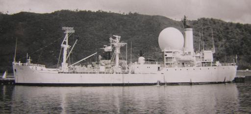 | Keywords: USNS Sword Knot (T-AGM-13) in Trinidad (crop).jpg en USNS Sword Knot T-AGM-13 docked in Trinidad http //www flickr com/photos/28155983 N07/4432444961/in/photostream/ 1966 U S Navy/GM3 Wirth Public domain PD-USGov-Military-Navy USNS Sword Knot T-AGM-13 |