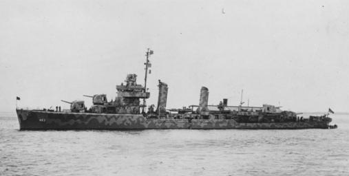 | Keywords: USS Aaron Ward (DD-483) in New York Harbor, 1942.jpg USS Aaron Ward DD-483 probably photographed in New York Harbor circa 15 May 1942 This image has been retouched by wartime censors to remove radar antennas atop the gun director and foremast http //www history navy mil/photos/images/h97000/h97809c htm Naval Historical Center Photo NH 97809 1942-05-15 Official U S Navy Photograph PD-USGov-Military-Navy USS Aaron Ward DD-483 | ||||