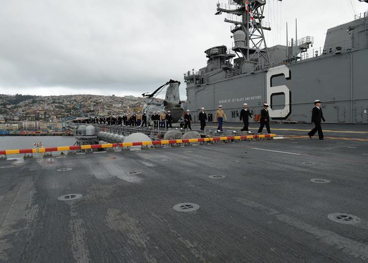 | Keywords: USS America arrives in Valparaiso 140824-N-FR671-049.jpg en Sailors and Marines aboard future amphibious assault ship USS America LHA 6 prepare to man the rails as the ship gets ready to moor in Valparaiso Chile for a scheduled port visit America is currently traveling through the U S Southern Command and U S 4th Fleet area of responsibility on her maiden transit America visits the Americas America is the first ship of its class replacing the Tarawa-class of amphibious assault ships As the next generation big-deck amphibious assault ship America is optimized for aviation capable of supporting current and future aircraft such as the MV-22 Osprey and F-35B Joint Strike Fighter The ship is scheduled to be ceremoniously commissioned Oct 11 in San Francisco U S Navy photo by Mass Communication Specialist 2nd Class Jonathan A Colon/Released 2014-08-24 Jonathan Colon https //www dvidshub net/image/1521706 140824-N-FR671-049 2014-08-25 17 27 VALPARAISO CL PD-USGov-Military-Navy MV-22B Osprey USS America LHA-6 Images from DoD uploaded by Fæ |