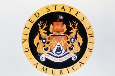 | Keywords: USS America (CV-66) seal.jpg en Coat of arms of the U S Navy aircraft carrier USS America CV-66 <br> Blazon<br> SHIELD Per chevron Gules and Argent in base a rattlesnake coiled to strike Azure and in chief two Pheons points up Or <br> CREST On a wreath Argent and Gules in front of a wreath of oak Or a ship ™s mast flying the flag as purported to have been flown over the Serapis after its capture by John Paul Jones above a full sail Gules charged with a lion passant guardant of the third <br> MOTTO On a scroll Argent doubled of the like the words DON ™T TREAD ON ME Gules The words DON ™T TREAD ON ME as the ship ™s motto best reflect the spirit and traditions contained within the name AMERICA <br> SUPPORTERS On either side in front of three waves by the sea Azure and Argent a sea stag Or having suspended from their necks by a chain of the second an escutcheon of the first that to Dexter charged with a mullet and that to sinister with a FLEUR-DE-LIS both of the second <br> <br> Symbolism<br> SHIELD <br> The role of the Continental Navy in the American Revolution and of John Paul Jones as an outstanding figure throughout that conflict is the basic theme of the design The two arrowheads or pheons as they are known in heraldry are symbolic of the welding of sea and Air Forces into a single mighty weapon the Aircraft Carrier <br> The white of the field on which the rattler is depicted is an allusion to the ships sent to our assistance under the Bourbon Flag of France while the coiled rattlesnake was a symbol in popular use on captains´ flags in the Continental Marine <br> The Crest showing an American flag A type reputed to have been flown by the captured Serapis while in the Dutch Harbor of the Texel flying above a British sail all in front of a golden oak wreath symbolizes the most glorious event of John Paul Jones Naval career The Battle of the Bonhomme Richard under his command with HMS Serapis <br> He defeated the Serapis in a desperate fight and as his own ship the Richard was mortally damaged Jones sailed the Serapis into the Texel in Holland <br> The two stags represented on John Paul Jones´ coat of arms have been adapted as sea stags and used as supporters attesting to his lifelong dedication and devotion to the naval service <br> The shields pendent from their necks testify to the honors bestowed upon Jones both by France a country he loved and honored and by the United States his adopted homeland 6433347 en United States Navy 1965-01-23 Coat Of Arms Authorized 1961-01-01 thumb left PNG PD-USGov-Military-Navy USS America CV-66 United States Navy aircraft carrier emblems 066 Don't Tread on Me |