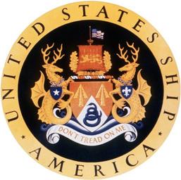 | Keywords: USS America (CV-66) insignia 1963.png en Coat of arms of the U S Navy aircraft carrier USS America CV-66 <br> Blazon<br> SHIELD Per chevron Gules and Argent in base a rattlesnake coiled to strike Azure and in chief two Pheons points up Or <br> CREST On a wreath Argent and Gules in front of a wreath of oak Or a ship ™s mast flying the flag as purported to have been flown over the Serapis after its capture by John Paul Jones above a full sail Gules charged with a lion passant guardant of the third <br> MOTTO On a scroll Argent doubled of the like the words DON ™T TREAD ON ME Gules The words DON ™T TREAD ON ME as the ship ™s motto best reflect the spirit and traditions contained within the name AMERICA <br> SUPPORTERS On either side in front of three waves by the sea Azure and Argent a sea stag Or having suspended from their necks by a chain of the second an escutcheon of the first that to Dexter charged with a mullet and that to sinister with a FLEUR-DE-LIS both of the second <br> <br> Symbolism<br> SHIELD <br> The role of the Continental Navy in the American Revolution and of John Paul Jones as an outstanding figure throughout that conflict is the basic theme of the design The two arrowheads or pheons as they are known in heraldry are symbolic of the welding of sea and Air Forces into a single mighty weapon the Aircraft Carrier <br> The white of the field on which the rattler is depicted is an allusion to the ships sent to our assistance under the Bourbon Flag of France while the coiled rattlesnake was a symbol in popular use on captains´ flags in the Continental Marine <br> The Crest showing an American flag A type reputed to have been flown by the captured Serapis while in the Dutch Harbor of the Texel flying above a British sail all in front of a golden oak wreath symbolizes the most glorious event of John Paul Jones Naval career The Battle of the Bonhomme Richard under his command with HMS Serapis <br> He defeated the Serapis in a desperate fight and as his own ship the Richard was mortally damaged Jones sailed the Serapis into the Texel in Holland <br> The two stags represented on John Paul Jones´ coat of arms have been adapted as sea stags and used as supporters attesting to his lifelong dedication and devotion to the naval service <br> The shields pendent from their necks testify to the honors bestowed upon Jones both by France a country he loved and honored and by the United States his adopted homeland 6433347 en United States Navy 1965 01 23 Coat Of Arms Authorized 1961 01 01 PD-USGov-Military-Navy USS America CV-66 United States Navy aircraft carrier emblems 066 Don't Tread on Me |