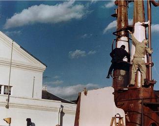 | Keywords: USS Balaos (SS-285) sail is painted pink.jpg Navy Memorial Museum Washington Navy Yard D C Naval Reservists painting the USS Balao SS-285 conning tower fairwater sail which was exibited in front of the museum Spring 1975 The color used was pink in honor of Balao's starring role as the pink submarine in the 1959 motion picture Operation Petticoat The pink paint lasted a few months until the humor wore thin after which standard Navy grey came back in vogue http //www history navy mil/photos/images/h83000/h83437k jpg Naval Historical Center cropped All information on this site is in the public domain and may be distributed or copied unless otherwise specified Use of appropriate byline/photo/image credits is requested PD-USGov-Military-Navy USS Balao SS-285 Submarine sails |
