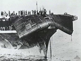 | Keywords: USS Bennington (CV-20) with damaged flight deck 1945.jpg en The U S Navy aircraft carrier USS Bennington CV-20 showing her collapsed flight deck which was damaged by Typhoon Connie on 5 June 1945 306577 author 1945-06-12 PD-Australia USS Bennington CV-20 1945 Pacific typhoon season Black and white photographs |