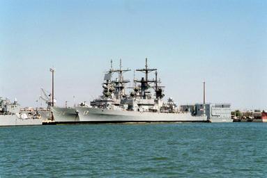 | Keywords: USS Biddle (CG-34) and USS Harry E Yarnell (CG-17) just prior to decommissioning.jpg en A port bow view of the guided missile cruisers USS BIDDLE CG-34 and USS HARRY E YARNELL CG-17 moored together at the destroyer and submarine piers Both ships have had their radar antennas removed prior to their upcoming decommissioning <br />Location NAVAL STATION NORFOLK<br />USS Mississippi CGN-40 is likely the ship obscured with the hull number 40 at left DN-SC-94-00029 Don S Montgomery USN 1993-10-02 USS Biddle CG-34 USS Harry E Yarnell CG-17 USS Mississippi CGN-40 PD-USGov-Military-Navy |