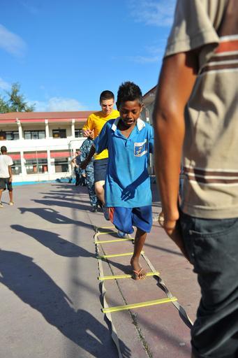 | Keywords: USS Blue Ridge operations 130626-N-NN332-120.jpg en Personnel Specialist 2nd Class William Baldwin participates in agility drills with children from Timor-Leste Kid's Tennis while U S 7th Fleet flagship USS Blue Ridge visits Dili Democratic Republic of TImor-Leste Blue Ridge port visits represent an opportunity to promote peace and stability in the South Indo-Asia-Pacific region demonstrate commitment to regional partners and foster growing relationships 2013-06-26 LCC 19 https //www dvidshub net/image/961830 130626-N-NN332-120 2013-06-27 03 41 USS BLUE RIDGE LCC 19 TL PD-USGov-Military-Navy USS Blue Ridge LCC-19 Images from DoD uploaded by Fæ |