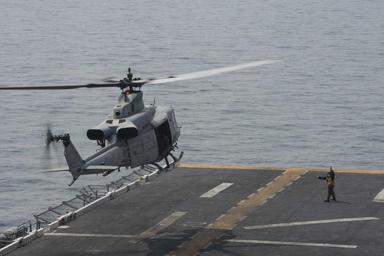 | Keywords: USS Bonhomme Richard operations 150329-N-LM312-023.jpg en 150329-N-LM312-023 WATERS TO THE EAST OF THE KOREAN PENINSULA March 29 2015 - An UH-1Y Huey helicopter assigned to Marine Medium Tiltrotor Squadron VMM 262 takes off from the flight deck of the forward-deployed amphibious assault ship USS Bonhomme Richard LHD 6 U S Sailors and Marines from the Bonhomme Richard Amphibious Ready Group ARG are participating in the Korean Marine Exchange Program KMEP in the Republic of Korea ROK with ROK Marine Corp and Navy The Bonhomme Richard ARG is comprised of the amphibious assault ship USS Bonhomme Richard LHD 6 the amphibious transport dock ship USS Green Bay LPD 20 the Whidbey-island class amphibious dock landing ship USS Ashland LSD 42 and the embarked 31st MEU U S Navy photo by Mass Communication Specialist 2nd Class Adam D Wainwright/Released 2015-03-29 Petty Officer 2nd Class Adam Wainwright https //www dvidshub net/image/1843567 150329-N-LM312-023 2015-03-29 07 07 USS BONHOMME RICHARD WATERS EAST OF KOREA AT SEA PD-USGov-Military-Navy USS Bonhomme Richard LHD-6 Images from DoD uploaded by Fæ |