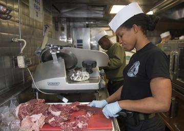 | Keywords: USS Boxer operations 160315-N-GZ228-117.jpg en EAST SEA March 15 2016 Marine Lance Cpl Jasmaine Howard from Atlanta prepares food for Sailors and Marines in the main galley aboard amphibious assault ship USS Boxer LHD 4 Boxer is the flagship of the Boxer Amphibious Ready Group and is participating in Exercise Ssang Yong 16 Ssang Yong is a biennial combined amphibious exercise conducted by forward-deployed U S forces with the Republic of Korea Navy and Marine Corps Australian Army and Royal New Zealand Army Forces in order to strengthen our interoperability and working relationships across a wide range of military operations - from disaster relief to complex expeditionary operations U S Navy photo by Mass Communication Specialist 3rd Class Jesse Monford/Released <br>Unit Navy Media Content Services 2016-03-15 Jesse Monford https //www dvidshub net/image/2468314/uss-boxer-operations 160315-N-GZ228-117 2016-03-17 00 09 USS BOXER PACIFIC OCEAN PD-USGov-Military-Navy USS Boxer LHD-4 Images from DoD uploaded by Fæ |