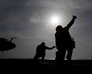| Keywords: USS Carl Vinson DVIDS375221.jpg en Lt Jeffrey Clark and Lt Brian Gaffney signal to launch an EA-6B Prowler from the Nimitz-class aircraft carrier USS Carl Vinson The Carl Vinson Carrier Strike Group is deployed supporting maritime security operations and theater security cooperation efforts in the U S 5th Fleet area of responsibility 2011-03-07 U S Navy photo/Petty Officer 3rd Class Christopher K Hwang https //www dvidshub net/image/375221 110307-N-+++++-236 2011-03-09 20 05 USS CARL VINSON USAFRICOM AT SEA PD-USGov-Military-Navy EA-6B Prowler US Marine Corps USS Carl Vinson CVN-70 Images from DoD uploaded by Fæ |