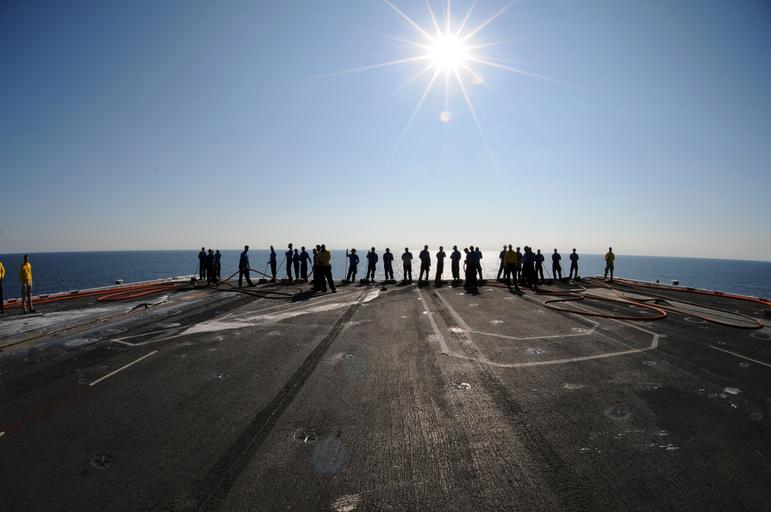 Keywords: USS Carl Vinson pulls out for sea trials DVIDS185885.jpg en Sailors assigned to the air department of the aircraft carrier USS Carl Vinson gather at the brow of the flight deck to give the flight deck a scrub down after a Counter Measure Wash Down test on the flight deck during the Aqueous Film Forming Foam Certification Carl Vinson is completing its scheduled refueling complex overhaul at Northrop Grumman Shipbuilding The RCOH is an extensive yard period that all Nimitz-class aircraft carriers go through near the mid-point of their 50-year life cycle During RCOH Carl Vinson's nuclear fuel has been replenished and the ship's services and infrastructure upgraded to make her the most state-of-the-art aircraft carrier in the fleet and ready for another 25 years or more of service <br>Unit Navy Media Content Services 2009-06-30 Petty Officer 1st Class Joseph Pfaff https //www dvidshub net/image/185885/uss-carl-vinson-pulls-out-sea-trials 090630-N-+++++-052 2009-07-07 10 47 USNORTHCOM AT SEA PD-USGov-Military-Navy USS Carl Vinson CVN-70 Images from DoD uploaded by Fæ |