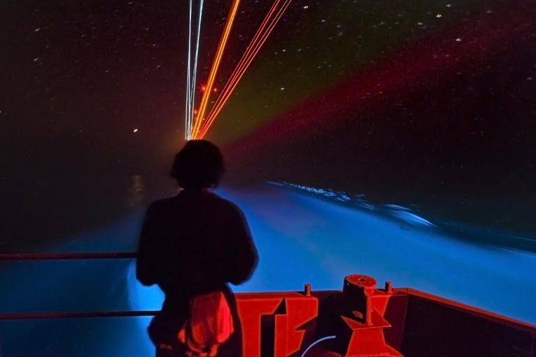Keywords: uss carl vinson sea ocean water ship aircraft carrier night evening jet approaching bioluminescent organisms light trails silhouette beautiful