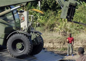 | Keywords: USS Carter Hall DVIDS251766.jpg en A Haitian boy looks on as a Seabee drives a forklift off an air-cushioned landing craft during an off-load of humanitarian supplies Carter Hall is conducting humanitarian and disaster relief operations as part of Operation Unified Response after a 7 0 magnitude earthquake caused severe damage in and around Port-au-Prince Haiti Jan 12 <br>Unit Navy Media Content Services 2010-02-13 U S Navy photo by Petty Officer 1st Class Hendrick Dickson/Released https //www dvidshub net/image/251766/uss-carter-hall 100213-N-+++++-026 2010-02-17 00 06 GRAND GOAVE HT PD-USGov-Military-Navy USS Carter Hall LSD-50 Operation Unified Response Images from DoD uploaded by Fæ |