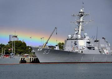 | Keywords: USS Chung-Hoon docked at Joint Base Pearl Harbor-Hickam 120531-N-RI884-002.jpg en The Arleigh-burke class guided-missile destroyer USS Chung-Hoon DDG 93 is docked at Joint Base Pearl Harbor-Hickam after a rain shower Chung-Hoon is the first ship in the U S Navy named after Navy Rear Adm Gordon P Chung-Hoon who was born in Hawaii U S Navy photo by Mass Communication Specialist 2nd Class Daniel Barker 2012-05-31 Petty Officer 2nd Class Daniel Barker https //www dvidshub net/image/592279 120531-N-RI884-002 2012-06-01 23 50 PEARL HARBOR HI US PD-USGov-Military-Navy 2012 in Pearl Harbor Rainbows in Hawaii USS Chung-Hoon DDG-93 at Pearl Harbor USS Chung-Hoon DDG-93 Images from DoD uploaded by Fæ |