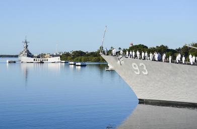 | Keywords: USS Chung-Hoon operations 141207-N-WX111-017.jpg en The guided-missile destroyer USS Chung-Hoon DDG 93 conducts a pass-in-review by the USS Arizona Memorial during the 73rd Anniversary Pearl Harbor Day commemoration ceremony at the Pearl Harbor Visitor Center More than 2 000 guests including Pearl Harbor survivors and other veterans attended the National Park Service and U S Navy-hosted joint memorial ceremony at the World War II Valor in the Pacific National Monument This year's theme focused on Preserving the Memory U S Navy photo by Mass Communication Specialist 1st Class Katherine Hofman/Released 2014-12-05 Petty Officer 1st Class Katherine Hofman https //www dvidshub net/image/1718490 141207-N-WX111-017 2015-01-09 14 09 PEARL HARBOR HI US PD-USGov-Military-Navy USS Arizona Memorial USS Chung-Hoon DDG-93 Images from DoD uploaded by Fæ |