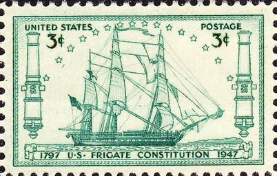 | Keywords: USS Constitution 150 Anniversary Issue of 1947-3c.jpg <big>USS Constitution</big> 150th Anniversary Issue of 1947 3c light green U S Government; Department of the Post Office<br/>Image obtained from hi-res scan of US Postage stamp from private collection by Gwillhickers Bureau of Engraving an Printing; Stamp design by Andrew H Hepburn 1947-10-21 USS_Constitution_150_Anniversary_Issue_of_1947-3c jpg Image sources American History US postage stamps American Revolutionary War PD-USGov Stamps of the United States 1941-1950 History of the United States on stamps USS Constitution in 20th century 1940 stamps USS Constitution on stamps Green stamps Ships on stamps |
