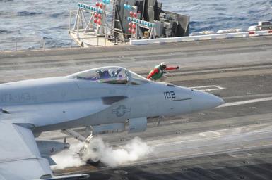 | Keywords: USS Dwight D. Eisenhower flight operations 121218-N-GY309-108.jpg en An F/A-18E Hornet assigned to the Pukin Dogs of Strike Fighter Squadron VFA 143 launches from the aircraft carrier USS Dwight D Eisenhower CVN 69 during the departure of Carrier Air Wing CVW 7 Dwight D Eisenhower is returning to its home port of Norfolk Va after operating in the U S 5th and 6th Fleet areas of responsibility in support of Operation Enduring Freedom maritime security operations and theater security cooperation efforts U S Navy photo by Lt Adam R Cole 2012-12-18 Petty Officer 2nd Class Adam Cole https //www dvidshub net/image/804551 121218-N-GY309-108 2012-12-19 23 27 USS DWIGHT D EISENHOWER AT SEA PD-USGov-Military-Navy Operation Enduring Freedom USS Dwight D Eisenhower CVN-69 Images from DoD uploaded by Fæ |