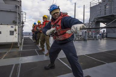| Keywords: USS Fort McHenry operations 150109-N-DQ840-131.jpg en Sailors and Marines aboard the Whidbey Island-class amphibious dock landing ship USS Fort McHenry LSD 43 man the phone-and-distance lines during an underway replenishment with the Military Sealift Command fleet replenishment oiler USNS Kanawha T-AO-196 Fort McHenry deployed as part of the Iwo Jima Amphibious Ready Group is conducting naval operations in the U S 6th Fleet area of responsibility in support of U S national security interests in Europe U S Navy photo by Mass Communication Specialist 3rd Class Adam Austin/Released 2015-01-09 Seaman Adam Austin https //www dvidshub net/image/1721659 150109-N-DQ840-131 2015-01-12 21 55 USS FORT MCHENRY AT SEA PD-USGov-Military-Navy USS Fort McHenry LSD-43 Images from US Navy location Iwo Jima Japan Images from DoD uploaded by Fæ |